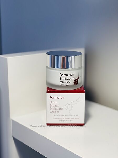 FARM STAY Snail Mucus Moisture Cream Оздоравливающий и антивозрастной крем насыщен экстрактом улитки, лечит кожу, избавляет от морщин, выравнивает рельеф, осветляет, лечит повреждения независимо от их происхождения, разглаживает рубцы, убирает следы от прыщей.Snail Mucus Moisture Cream будет полезным для кожи всех типов. Особенно средство рекомендуется в антивозрастном уходе, поскольку эффективно борется со следами увядания.