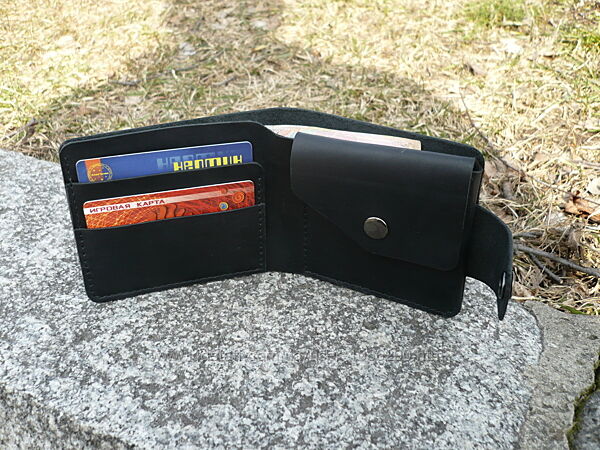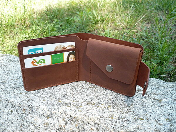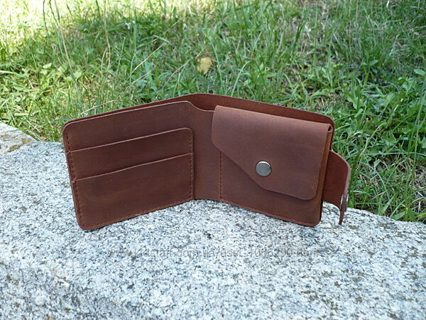 Кошелек бифолд из кожи КРС " crazy horse " . Прошит вощеной нитью galaces 0,55 mm. Урез без обработки. Одно отделение для купюр , два кармана для пластиковых карт, монетница. Размер 115*95 мм. Ручная работа. Ценность: 500 грн