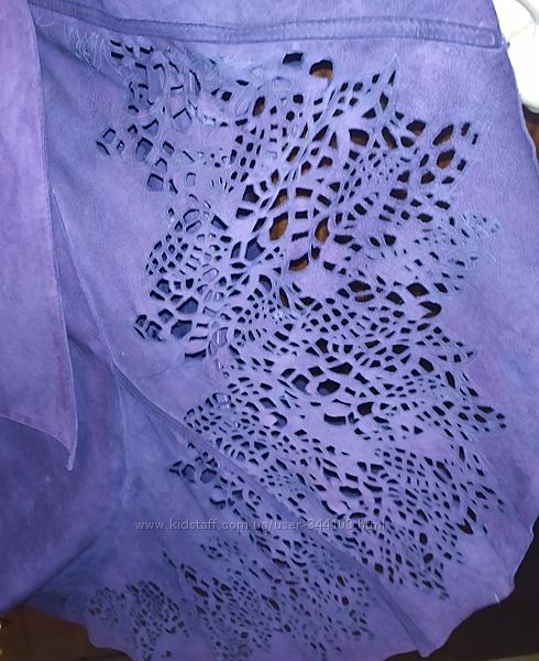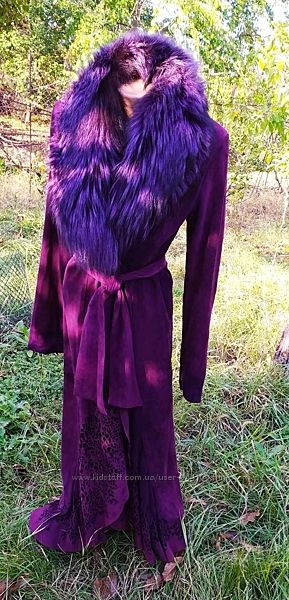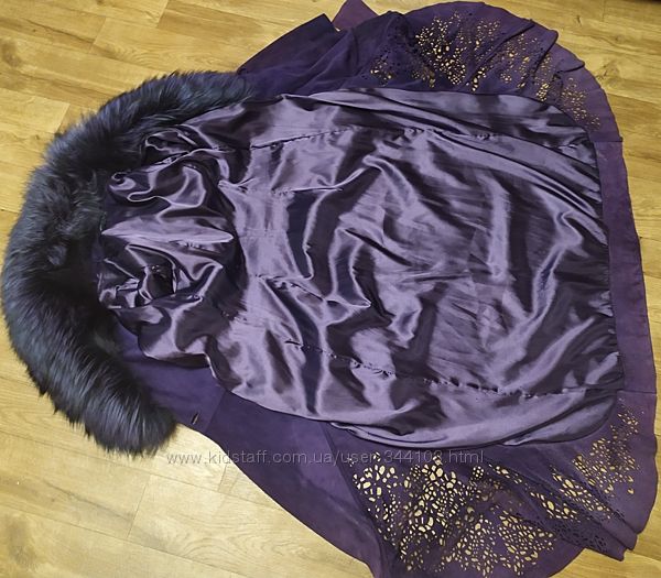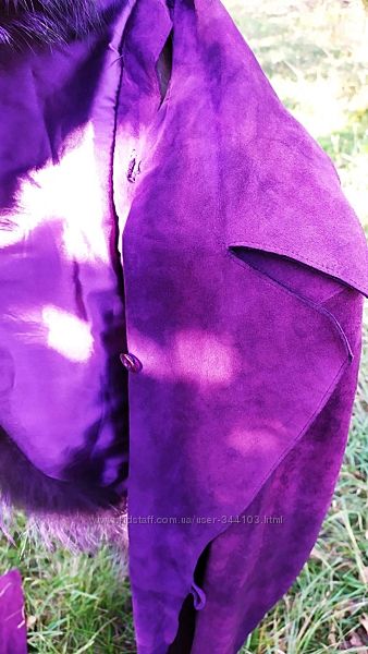 натур. замш, натур. мех. Есть местами неоднородность окраса, но не заметно, только при детальном рассмотрении, на сгибе воротника (под мехом)- заметнее. См., пож-та, фото, спец. сделаны со вспышкой и без. Соответственно, снижена цена. Франция. Мягчайшая выделка. Шикарный узор по подолу. Размер М (начальный). Цвет чернильный, ближе к фиолетовому. ссылка на доп. фото, прошу: https://www.kidstaff.com.ua/gallery-554791.htmlбез возвратов