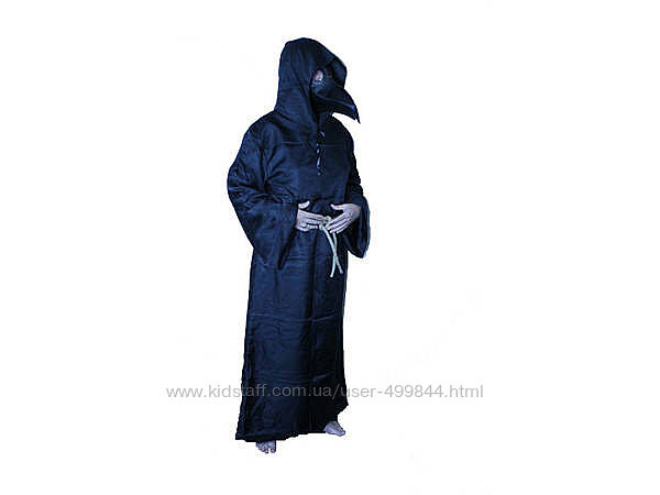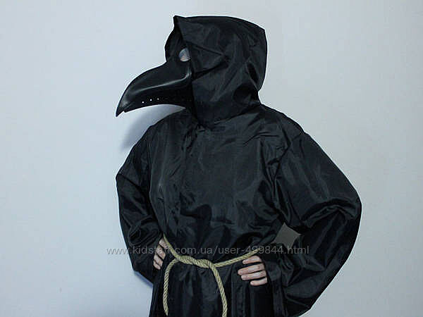 Популярный костюм Чумной Доктор смерть или Чумного доктора максимально похожа на образ доктор смерть или голову птицы ворона, клювовидная с большим клювом и блестящими глазами птицы. Костюм в популярном стиле стимпанк для Хэллоуина, маскарада и карнавала укомплектован плащом с капюшоном и рукавами на рост от 160 см и до 190 см, и пояс в виде натуральной веревки длинной 150 см и маска Чумной доктор. Маска чумного доктора черного цвета изготовлена из искусственной кожи с полу-матовым покрытием, в глазницы маски вшиты линзы с черным оттенком. Крепление маски с помощью широкой текстильной резинки позволяет применять маску доктор смерть на любой размер головы.Отправляем новой почтой наложенным платежом с предоплатой 250 грн. Остальная сумма будет наложенным платежом!