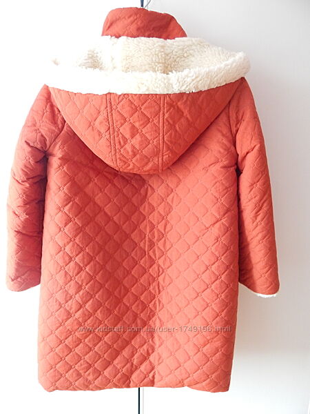 Очень теплое зимнее пальто на девочку рост 122 (указано на бирочке) на натуральной овчине б/у в очень хорошем состоянии.Насыщенный кирпичный цвет.