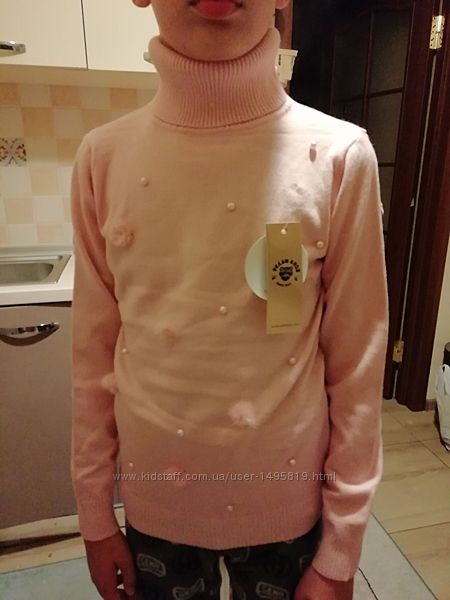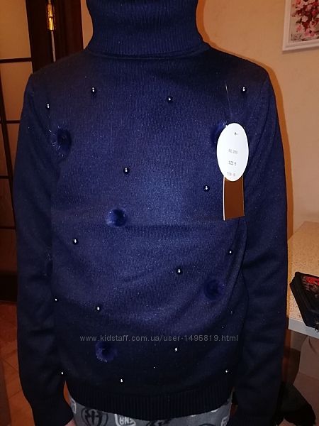Очень красивый свитер-водолазка с оригинальным декором для ваших модниц, фабричный Китай. Состав: 30% nylon, 60% cotton, 10 poliamide. Хорошая растяжимость. Цвет темно синий и пудра. Качество супер!!!р.8: длина по спинке от горловины - 43,5, рукав от плеча - 44, ПОГ 34, плечи 29