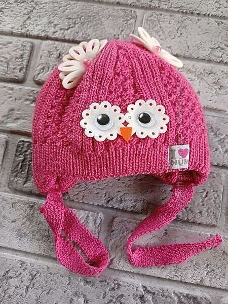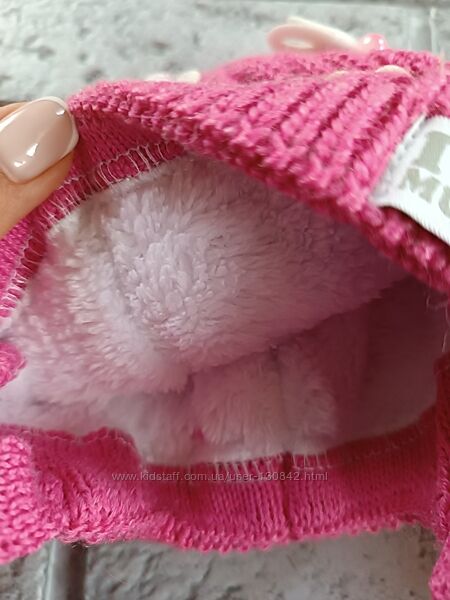 Шапочка зимняя для новорожденных.С мехом внутри. Очень тёплая. С завязками. С прикольными ушками и глазками.