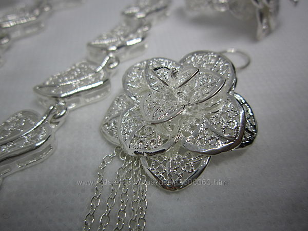 Продам набор шикарной бижутерии. Ювелирный сплав с посеребрением 925 пробы. Совершенно новый, не носился, не примерялся. Очень красивый, ажурный, нежный. Подойдет для любых праздников, свадьбы, в качестве оригинального подарка.