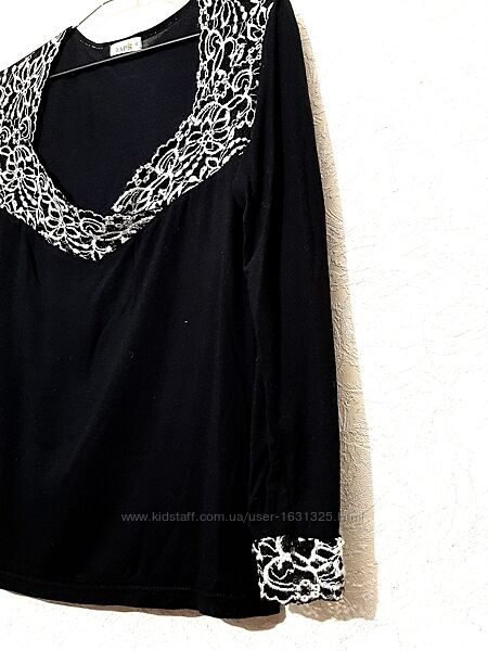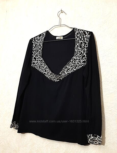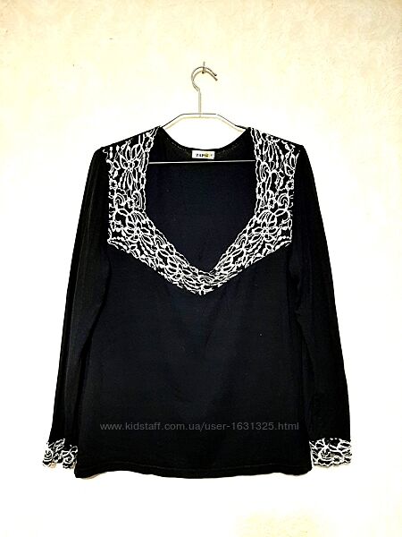 Подробное описание: Блузка кофточка чёрная женская белая кружевная отделка XL ZAPS Польша