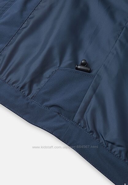 Все основные швы в этой куртке герметично запаяны, а сама она сшита из водо- и ветронепроницаемой и к тому же грязеотталкивающей ткани. Съемный капюшон безопасен во время игр на улице. А в небольших карманах все найденные драгоценные камешки и шишки будут в целости и сохранности.