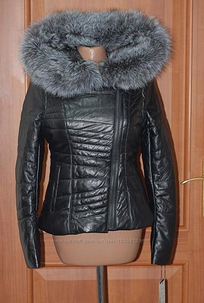 Кожаная куртка трансформер с шикарным капюшоном из чернобурки.Натуральная кожа, легкое утепление. Размер L.