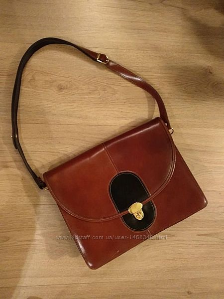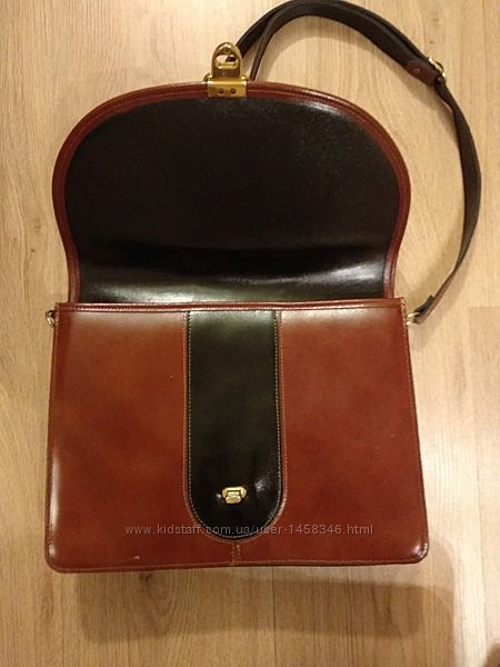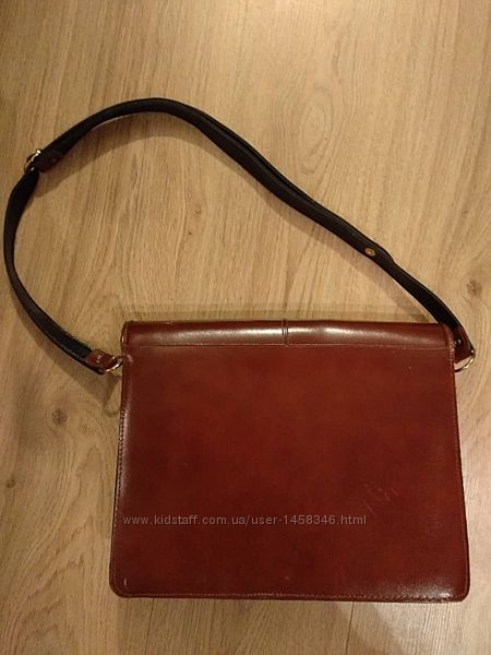 Сумка из натуральной, качественной,полированной кожи ,в оригинале выглядит лучше ,чем на фото,цвет немножко темнее,два отделения и два карманчика на молнии,углы ,ремень-ручка целые,ручка из кожезаменителя,размер: высота 24,5 см,длина 30 см,ширина дна 7 см,длина ручки 80 см .