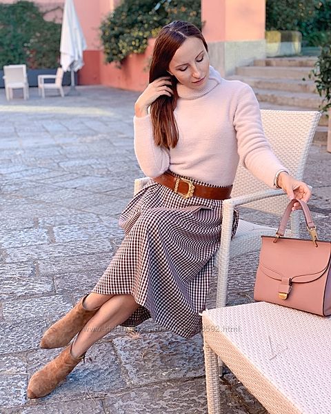 Юбка миди из плотной ткани в клетку виши, на поясе, со складками у талии, Италия Подчеркивает талию, делает силуэт более женственным. Два боковых кармана. Застежка молния. Универсальный крой позволяет носить буквально с любым верхом: от футболки и блузы до свитера оверсайз.