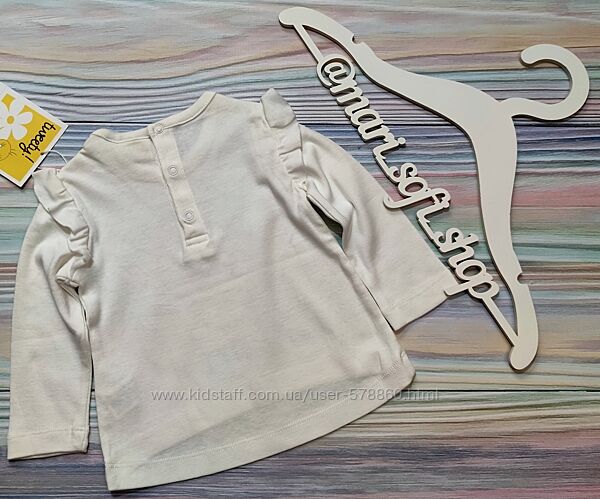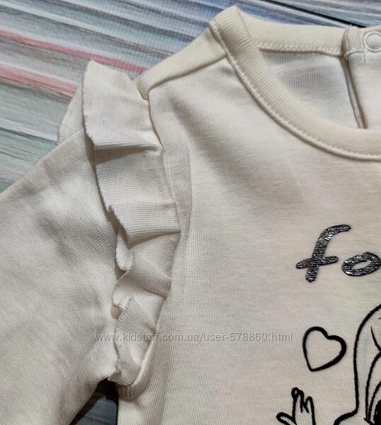 Молочний реглан з принтом качечки Tweety від італійського бренду Original Marines для маленької принцеси у розмірі 6-9 міс (с4).Принт блискучий, ззаду застібається на кнопки, подовжена спинка, на плічиках рюшики.