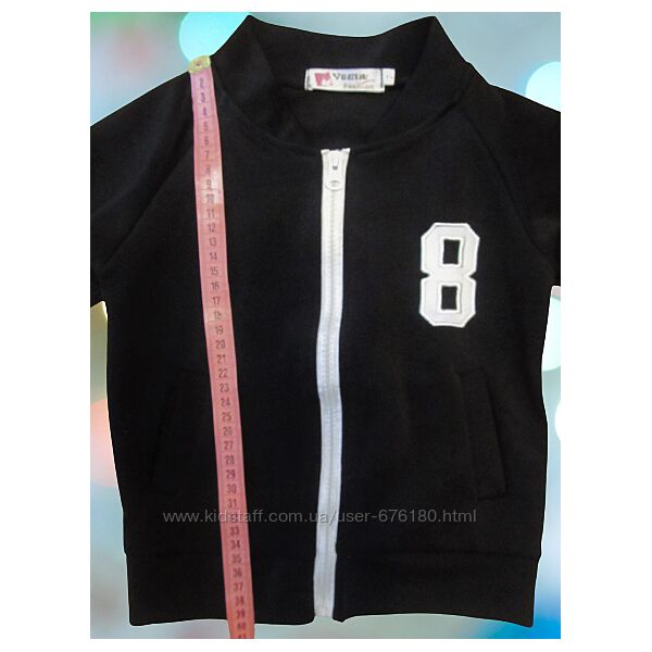 Стильная спортивная кофта бомпер с номером ,трикотажная,на молнии,рукав реглан,два внутренних кармана. Цвет: черный + белая аппликация номера спереди и сзади Размер: 30 ( рост 104-110 см) Производитель: Китай Состояние: отличное,все как на фото, без сюрпризов Пол: унисекс Состав:на бирке не читается(предположительно полиэстер,отлично стирается,быстро сохнет,не требует глажки) Замеры: ПОГ 32-33 см,тянется Длина изделия: от горловины 40 см Длина рукава: от горловины 39 см ширина по низу - 30 см Обмен,возврат: не предусмотрен Смотрите все мои объявления! Доставка:Новой почтой,Укрпочтой за счет покупателя
