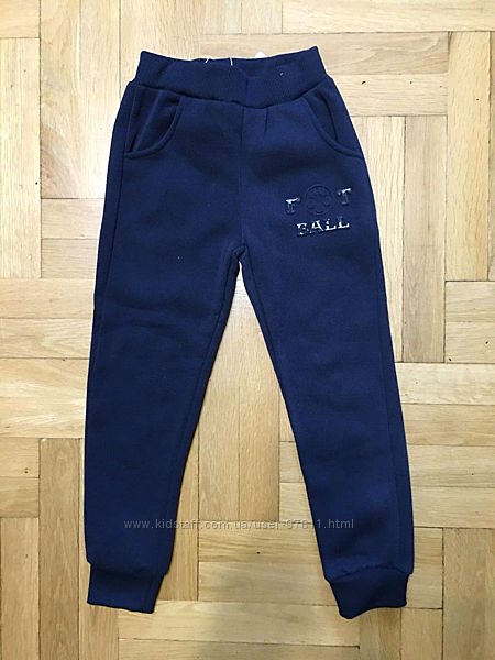 Теплі спортивні штани для хлопчиків. Верх - гладка трикотажна тканина.Є 2 кишені.