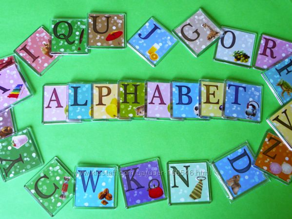 Набір літер англійського алфавіту з веселими малюнками, на магнітах!!!