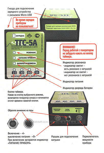 Внимание!!! Прибор не начнёт функционировать пока не будет нажата одна из кнопок таймера. Корпус катушек изготовлен из медицинского ABS пластика.