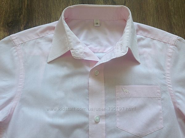 Однотонная нежно розовая рубашка для мальчика в отличном состоянии.Производитель C&A,cjcnfd 63% хлопок+37% полиэстер,на бирке указан рост 116( но мы носили и в 122),реальные замеры:длина по спине 50см,