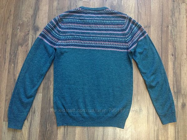 Очень качественный,красивый,не толстый,но теплый свитер для мальчика старшекласника в отличном состоянии.Состав 81% акрил+1% полиэстер+18% полипропилен,на бирке указан размер XS,реально примерно на рост 152-164,смотрите реальные замеры:длина по спине 65см,+