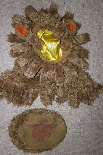 Продам очень миленький костюмчик льва для вашего малыша. Состояние очень хорошее. Хорошее настроение в таком костюмчике гарантировано! Подкладка атласная. Капюшон грива и тапочки съёмные. Тапочек один утерян. Не съёмные варежки и хвост. Застегивается липучкой.