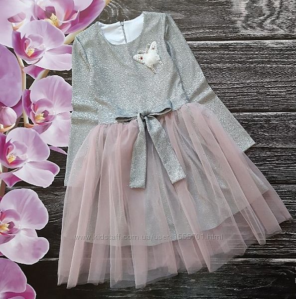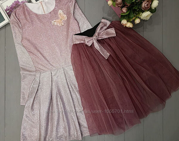 Невероятно красивое блестящее платье в комплекте с фатиновой юбкой-повязкой, на спинке молния, брошь не снимается. Ткань: люрекс + фатин Замеры: длина/рукав /пог 134см: длина - 69см. рукав - 50см. ширина - 34см. НЕТ 140см: длина - 74см. рукав - 52см. ширина - 35см. НЕТ 146см: длина - 78см. рукав - 55см. ширина - 35см, длина фатиновой юбки 57 152см: длина - 81см. рукав - 56см. ширина - 36см. НЕТ