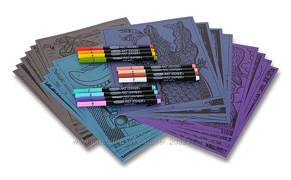 В наборе: 12 ярких маркеров, 18 подготовленных листов.