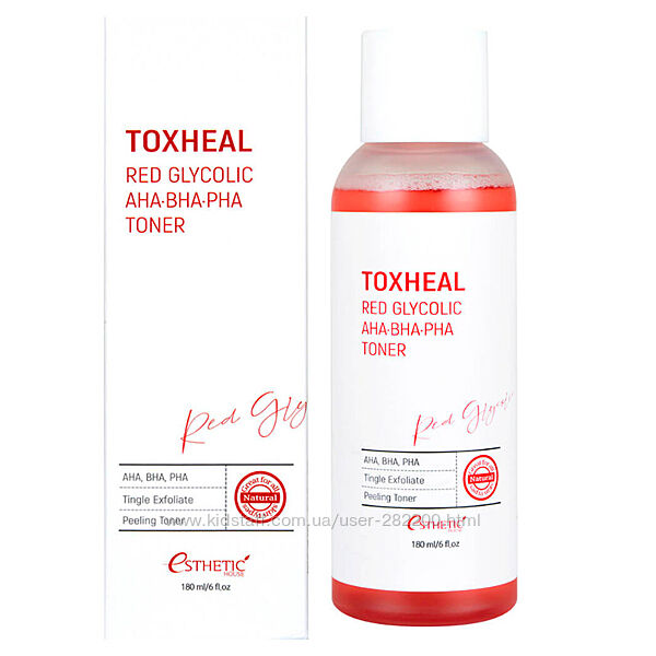Пілінг-тонер із гліколевою кислотоюEsthetic House Toxheal Red Glycolic AHA-BHA-PHA Toner, 180 мл
