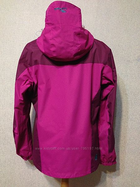 Ветровка непромокаемая красивого розового цвета(фуксии+марсал) в отличном состоянии.Верх- ветро-водонепроницаемая ткань,подкладка- сетка,под рукавами молнии для проветривания,карманы на молнии,низ куртки можно затягивать,ширина манжета рукавов регулируется липучками,капюшон не отстегивается,затягивается шнурочком-фиксаторами,внутри есть карманы для телефона,плеера.Размер указан L,но я носила на М и хоть куртка тонкая,но реально носила до первых морозов ,реальные замеры:длина по спине 66см,