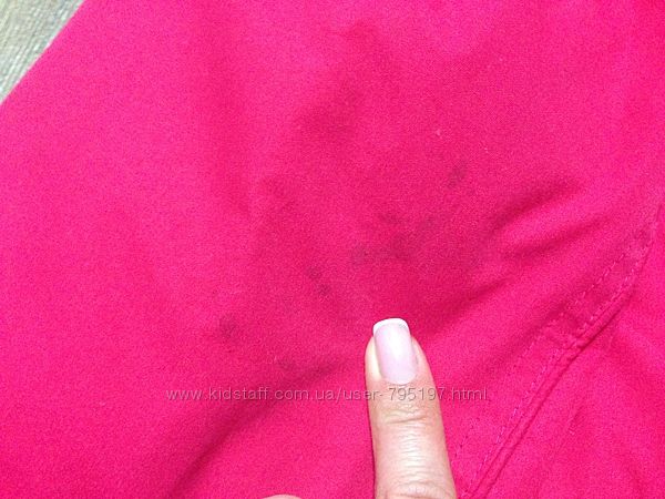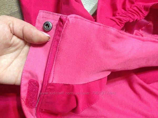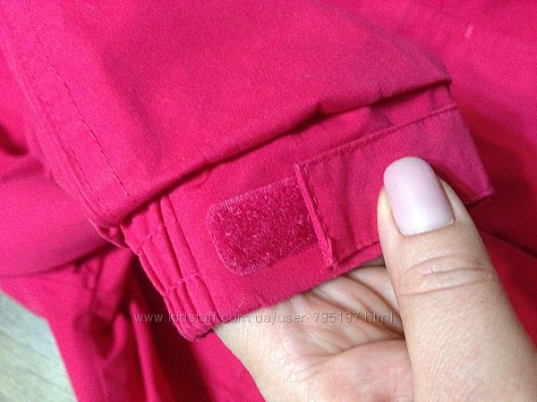 Ветровка на мембране розового цвета(фуксия) в отличном состоянии.Верх- ветро-водонепроницаемая ткань внутри на мембране,подкладка- сетка,все швы проклеены-не промокает,карманы на молнии,низ куртки и талию можно затягивать шнурком-резинкой и фиксатором,ширина манжета рукавов регулируется липучками,капюшон отстегивается,внутри есть карманы для телефона,плеера и фиксатор для наушников.На бирке указано 9-10 лет,реальные замеры:длина по спине 61см,