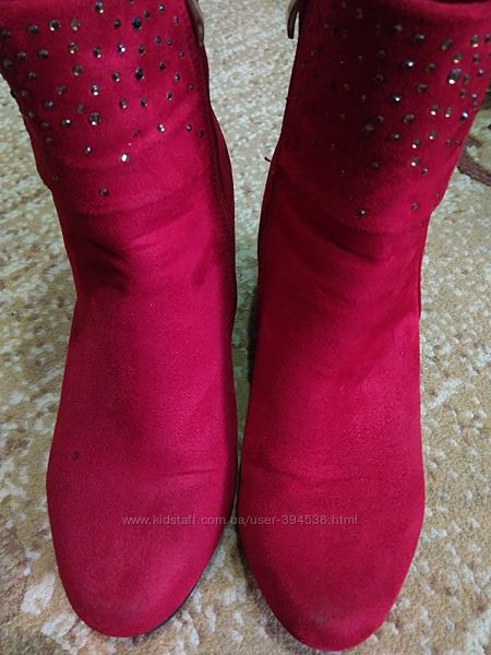 Замшевые ботинки на танкетке, стелька 26 см.Состояние хорошее, замки работают отлично, набойки поменяла. Высота танкетки не чувствуется. Есть незначительные потёртости на носках (на фото указала).