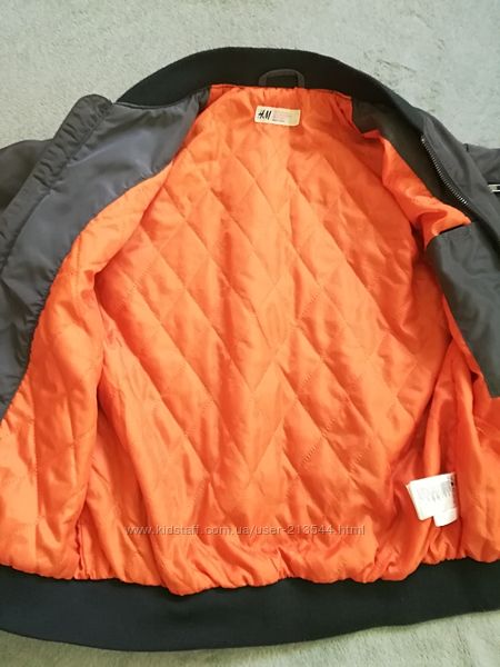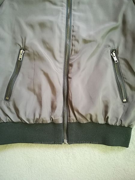 Отличный красивый бомбер H&M на рост 146-152 смСостояние отличное, есть малюсенький нюанс-царапинки возле шва, где пришит рукав(фото), немножечко покатан трикотаж Нюанс не заметен в носке абсолютно Подкладка прошита с тонюсеньким слоем утеплителя Есть внутренний карман для смартфона Моделька отлично подойдёт для худенького