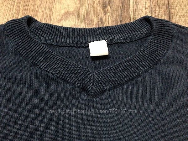 Свитер для мальчика очень качественный в отличном состоянии!Красиво и комфортно как самостоятельно,так и на рубашку.Производитель Бангладеш,состав 100% хлопок,на бирке указано 6 лет,рост 116,реальные замеры:длина по спине 46см,