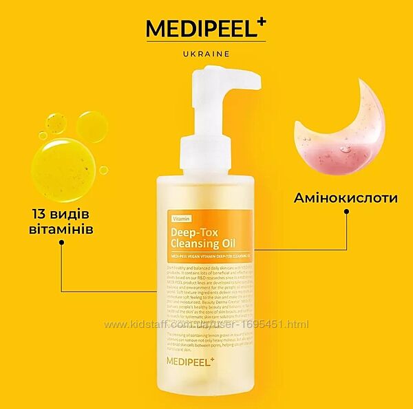 ЕХР 12.07.2026Вітамінна гідрофільна олія Medi-Peel Vegan Vitamin Deep Tox Cleansing Oil на основі поживних рослинних олій ретельно очищає та тонізує шкіру, прибираючи забруднення всіх типів, включаючи стійкий макіяж. Легко видаляє водостійкий макіяж та тональні основи.