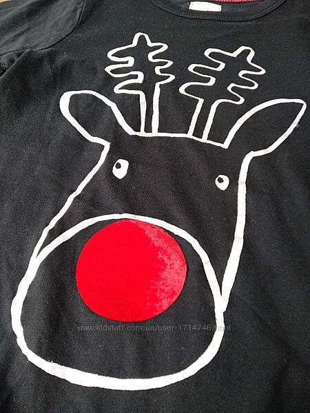 Дитяча футболка реглан від George. Блискучий новорічний олень з велюровим червоним носиком))Розмір по бірці 104-110 (4-5 років).