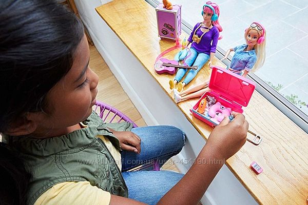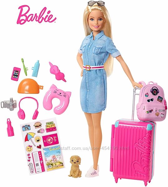 Кукла Барби путешественница с аксессуарами Barbie TravelУ куклы выразительные голубые глаза и длинные светлые волосы, которые можно расчёсывать и укладывать в причёски. Барби всегда готова к путешествиям в весёлой компании своего четвероногого друга. Для дальней дороги у неё есть всё необходимое — вместительный чемодан и множество полезных в пути аксессуаров. Розовый чемодан открывается и имеет складную ручку. Его можно украсить яркими наклейками, которые идут в комплекте.
