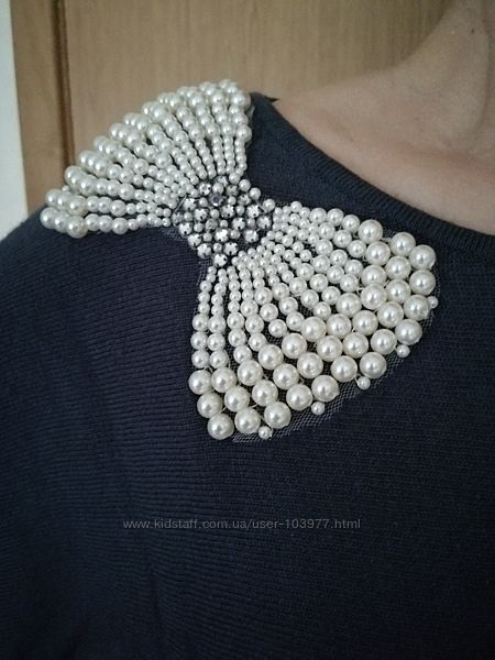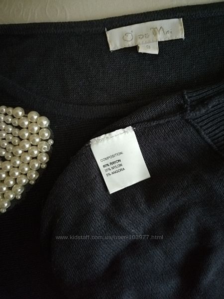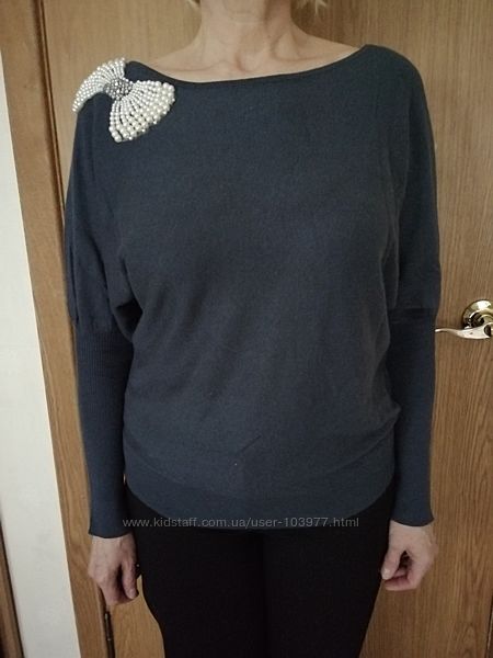 Элегантная женская кофточка O de Mai, Франция. Оригинал. Состояние: идеальное, одевалась один раз, а может просто примерялась... Размер: производителя-3, европейский-40. Полу обхват груди-ориентировочно 52 см, плечи-нет, длина рукава-ориентировочно 46 см, длина -69 см, ширина по низу-54 см. Состав: 60% rayon, 35% nylon, 5% angora. Цвет: серо-синий. Кофта украшена с правой стороны бантом из бисера "под жемчуг" разных размеров. Рукав: летучая мышь. Низ кофточки и рукава на резинке. Длина резинки на рукаве-30 см. Размеры модели: 99-78-105, рост 169.Оплата на карту Приват Банка или наличными при самовывозе.