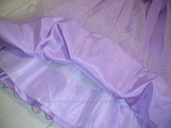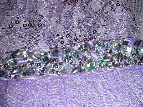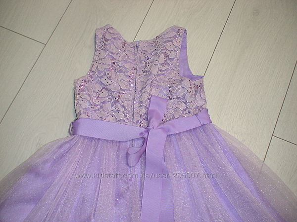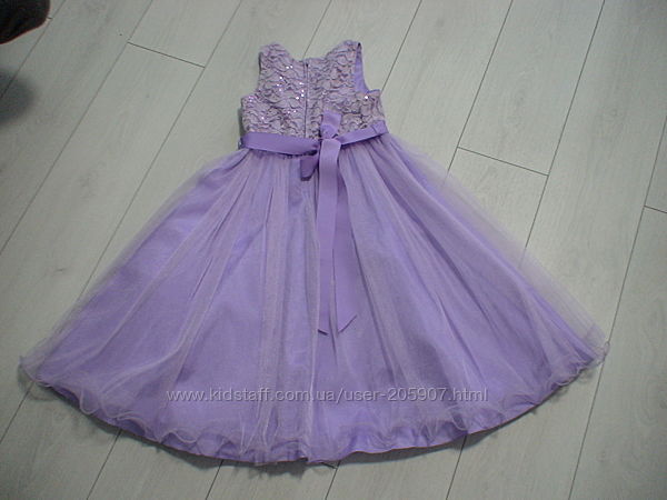 Порадуйте свою дівчинку красивою сукнею, розмір: 128-140см. Красива сукня для Вашої доньки. Підійде для будь-якої урочистості, ранку, випускного, свята, дня народження або просто для гарного настрою:)))Талія регулюється пояском. Шикарний лавандовий колір з пояском усипаний пришивними стразами, верх мереживної з паєтками, 5 фатинових, тканинних під´юпників!! Виробник-USA. Замовляла на Амазоні.Стан ідеальний, чудовий! Було одягнено 1 раз на урочистість.