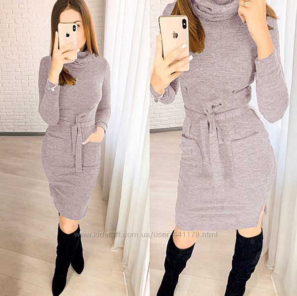 Платье-гольф миди с карманами. Фото реальныеРазмеры: 42-44