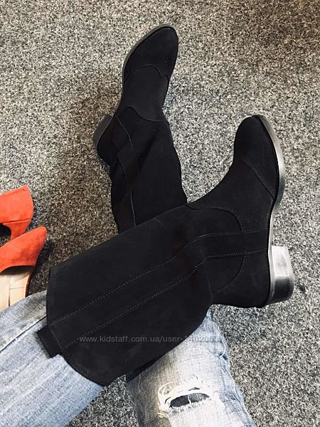 Подробное описание: Хит модель Сапоги Казаки замшевые натуральные чёрные от производителя ANS