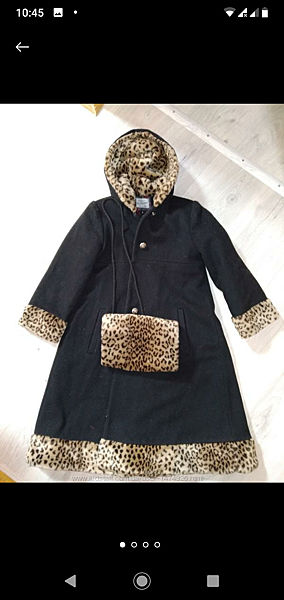 2.Продано!!! Пальто с муфтой. Цвет: черный с тигровым. Размер 8лет