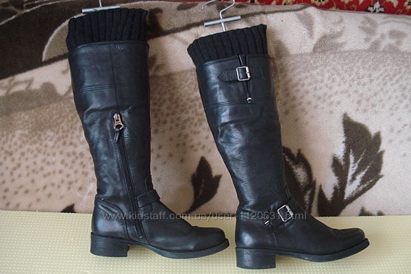 Шикарные фирменные демисезонные кожаные сапоги с чулком Tommy Hilfiger с фирм. логотипами-тиснениями по коже .Размер указан: 37