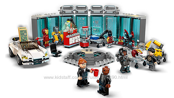 Конструктор LEGO Marvel Super Heroes 76216 Арсенал Железного человекаУкомплектованная самыми новыми разработками и приспособлениями мастерская-оружейная Тони Старка из Lego 76216 позволяет собирать высокотехнологичные костюмы для борьбы со злом. Гений-ученый работает не покладая рук, создавая новую броню, улучшая сильные стороны и исправляя недостатки своих творений. Лаборатория наполнена гаджетами так, чтобы не отвлекаться на мелочи и иметь необходимые инструменты под рукой: удобный верстак, пара многофункциональных столов для работы, робот с механической рукой и робот-дрель.