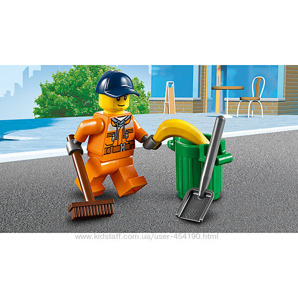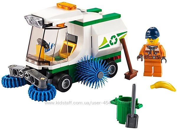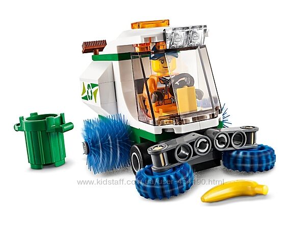 Конструктор LEGO City 60249 Машина для очистки улицМашина для очистки улиц оснащена вращающимися щетками, которые реалистично подметают мусор во время движения.В комплект входит минифигурка рабочего службы городской чистоты с аксессуарами, такими как швабра и мусорный бак, что добавляет игровому процессу реализм.Компактный размер и подвижные элементы делают этот набор идеальным для игры в сочетании с другими наборами LEGO CITY.
