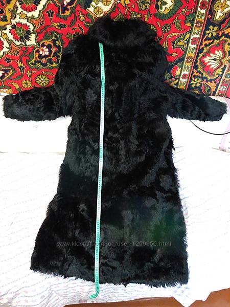 Шуба из козы, натуральная, размер -48-50-52 наш.Чёрный цвет. Цельная.Длина 125см.Застежки-крючки,1 крупная пуговица возле воротника,воротник круглый из этого же меха.шуба в отличном состоянии,густой мех. Очень тёплая,как под одеялом,мягчайшая.