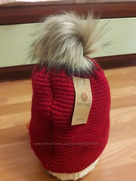 Новая зимняя шапка для девочки 6-8 лет.Фирма granz Турция.Цвет темно красный.
