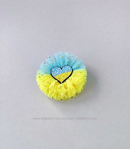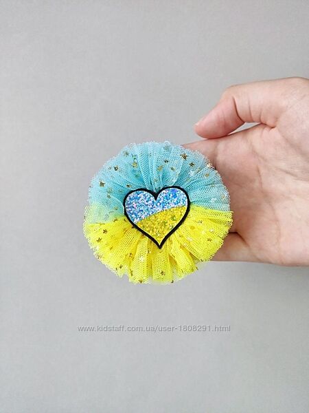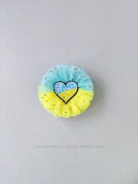 Чарівні жовто-блакитні бантики для волосся, для наших наймиліших україночок!Бантики виготовлені з найніжніших матеріалів – фатина та мережива. Центр кожного бантика прикрашений блискучим серцем у жовто-блакитних відтінках, яке додає додатковий сяючий акцент!