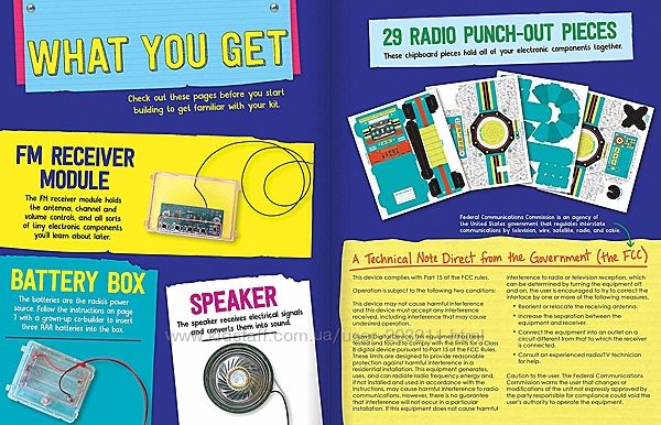 Создай свое собственное работающее FM радио! В наборе все необходимые составляющие, включая батарейки. 32 страничная книжка с пошаговыми инструкциями. В книжке расписано принципы преобразования электромагнитных волн в музыку.
