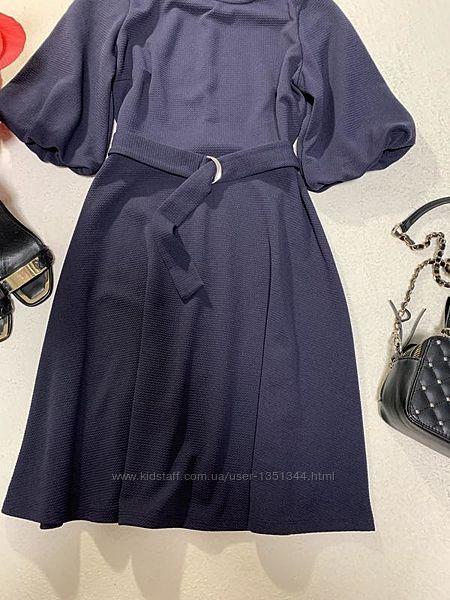 Подробное описание: Шикарное фактурное платье с поясом и красивыми рукавами-буфами