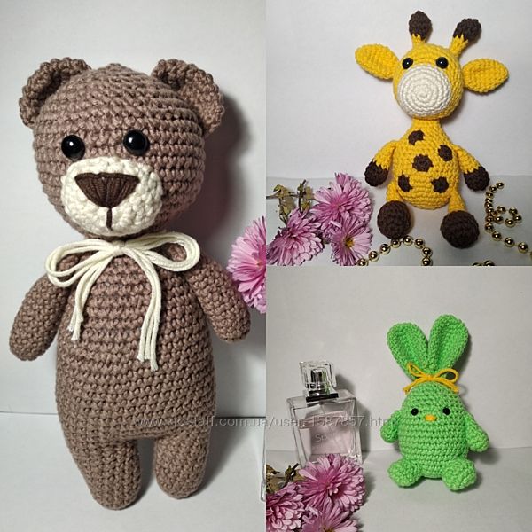 Подробное описание: Вязаные игрушки Мишка, Жираф, Зайка амигуруми