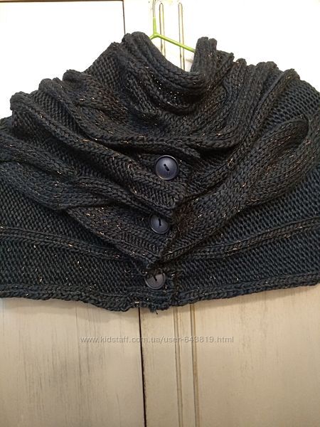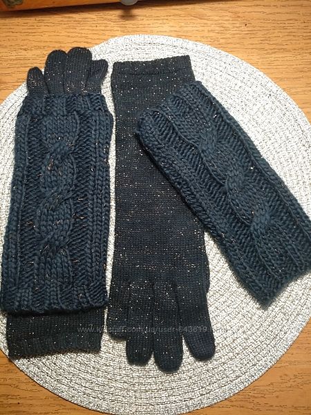 Новый комплект- большой, теплый шарф-снуд, длинные перчатки с митенками и повязка на голову. От тсм Чибо, немецкое качество. Размер снуда-190х32см. Можно носить,как шарф, не застегивая пуговиц, можно как снуд. Длина перчаток-31см. дл.митенок-21см. Удобное и очень красиво смотрится. Мягкое,, приятное к телу. Состав-91%акрил, 7%полиэстр, 2%металлическая медно-красная нить, это небольшие вкрапления ее, но украшает. Подарили, не ношу.Перешлю любой почтой.