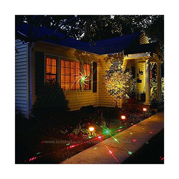 Особенно эффектно проекция картинок смотреться если направить проекцию на свой загородный дом.Вы можете выбирать цвет проекции между красным и зеленым светом, или выбрать комбинацию цветов.