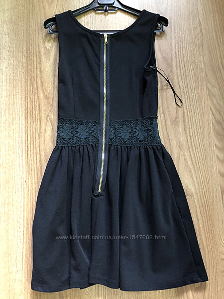 Чорна трикотажна сукня без рукавів , вставка мережево