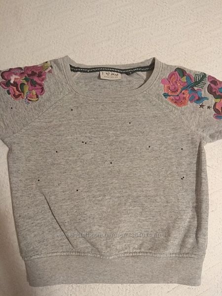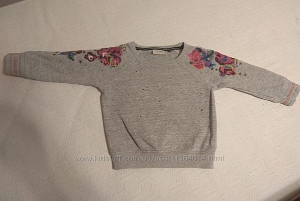 Идеальное состояние, Некст 4 годика, рост 104 см. Подойдёт от роста 98 и даже более 104 см. Ширина - 36 см, Рукав от плеча 39 см, внутренний рукав - 26,5 см. Длина по спинке - 38 см. Ткань: плотный теплый трикотаж на микробаечке, вышивка.